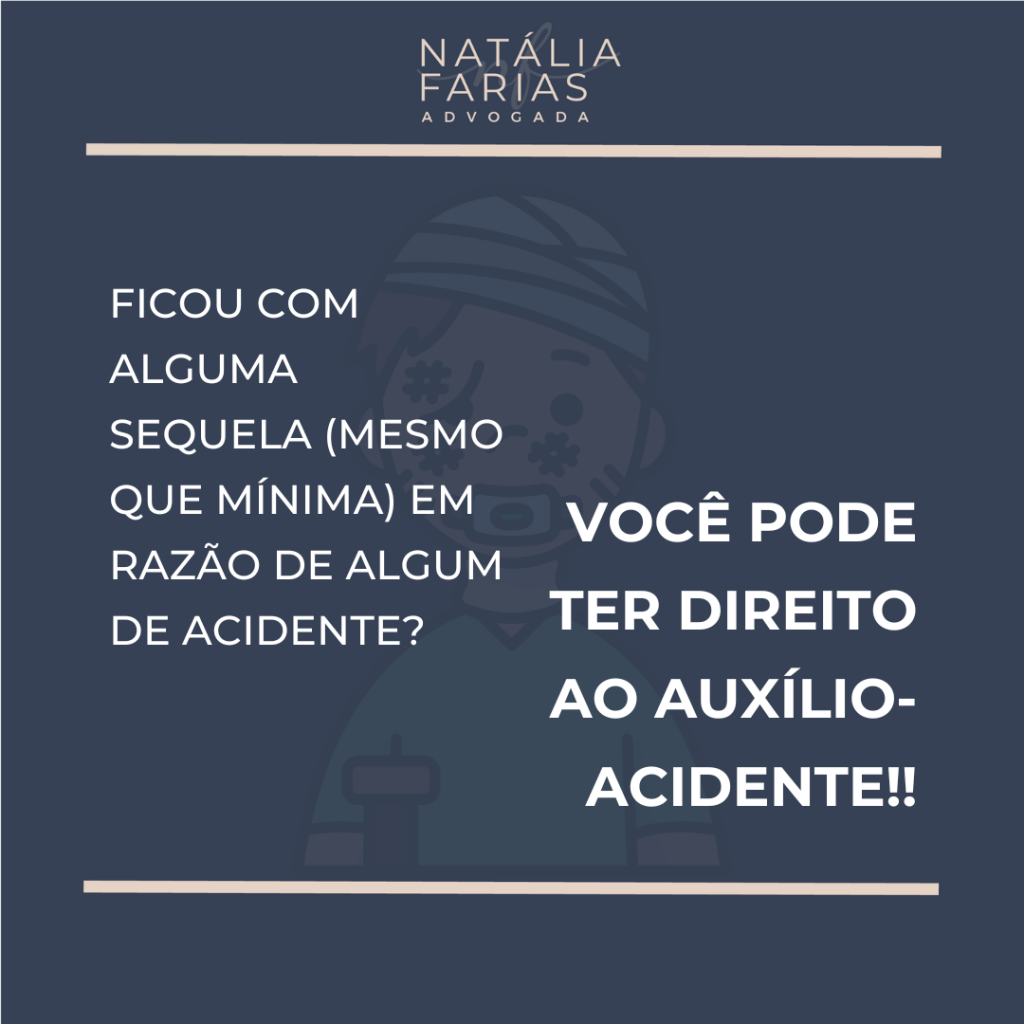 O Auxílio-acidente é um benefício pago pelo INSS ao Segurado que sofreu um acidente de qualquer natureza (ou seja, um acidente de trabalho ou um acidente qualquer – um acidente de moto, por exemplo) e ficou com alguma sequela PERMANENTE (ou seja, uma sequela já consolidada), que enseja uma redução, AINDA QUE MÍNIMA, da sua capacidade laborativa (uma limitação no movimento, por exemplo).
